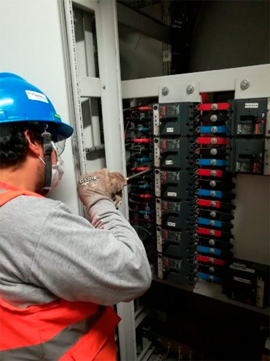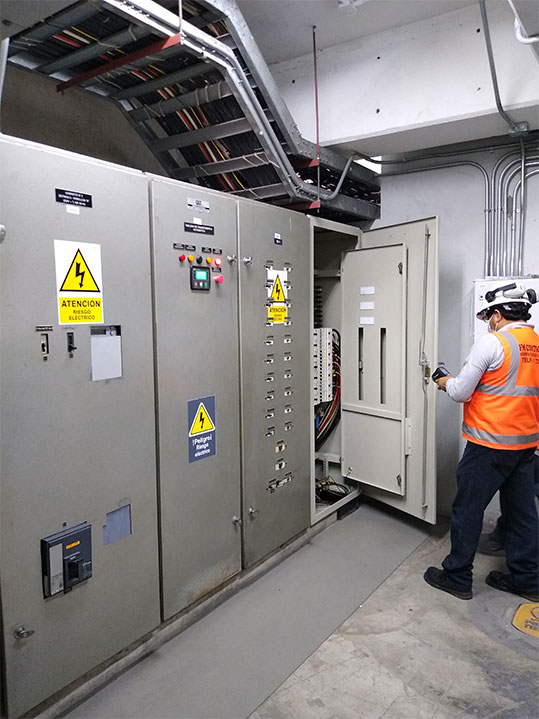 Nos encargamos de realizar el mantenimiento preventivo de los sistemas eléctricos y de acuerdo a los hallazgos los mantenimientos correctivos de los pozos a tierra, tableros (TD & TG) y sub estaciones de cada una de las sedes de Cibertec. el mantenimiento inicia con el levantamiento de información de campo para el desarrollo del informe con el antes y después de la ejecución del servicio, se realiza la limpieza de los sistemas eléctricos y se procede con el pintado de tapas, ajuste de los pernos y borneras de conexión, peinado de cables, medición de los valores de resistencia, pruebas de interruptores de alta tensión, etc. una vez culminado el servicio se entrega el informe general, certificado de operatividad (Según sea el caso), memoria descriptiva y cartas de garantía del servicio.